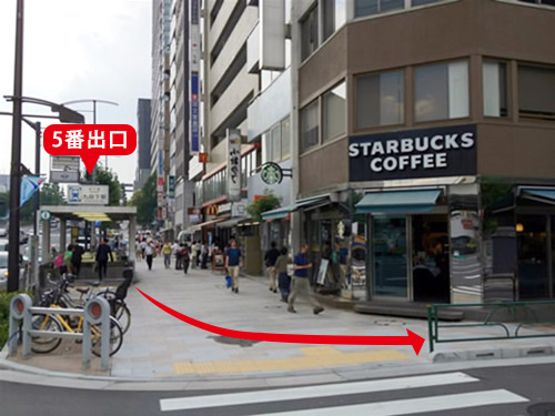 九段下駅5番出口を背にして左手にスターバックスが見えます。スターバックス前を道なりに左に歩きます。