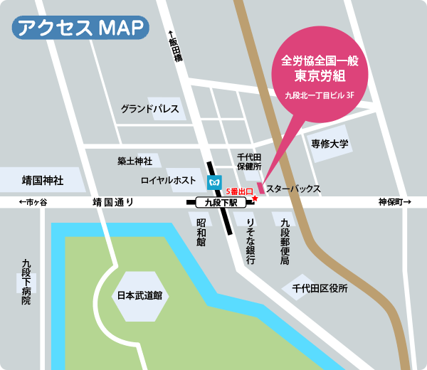 - 最寄駅:東京メトロ・東西線、半蔵門線/九段下駅 5番出口徒歩1分
